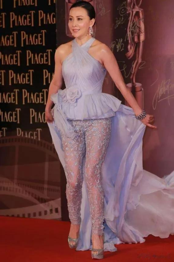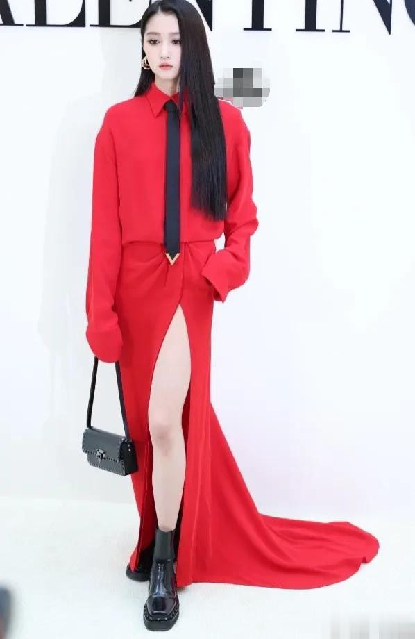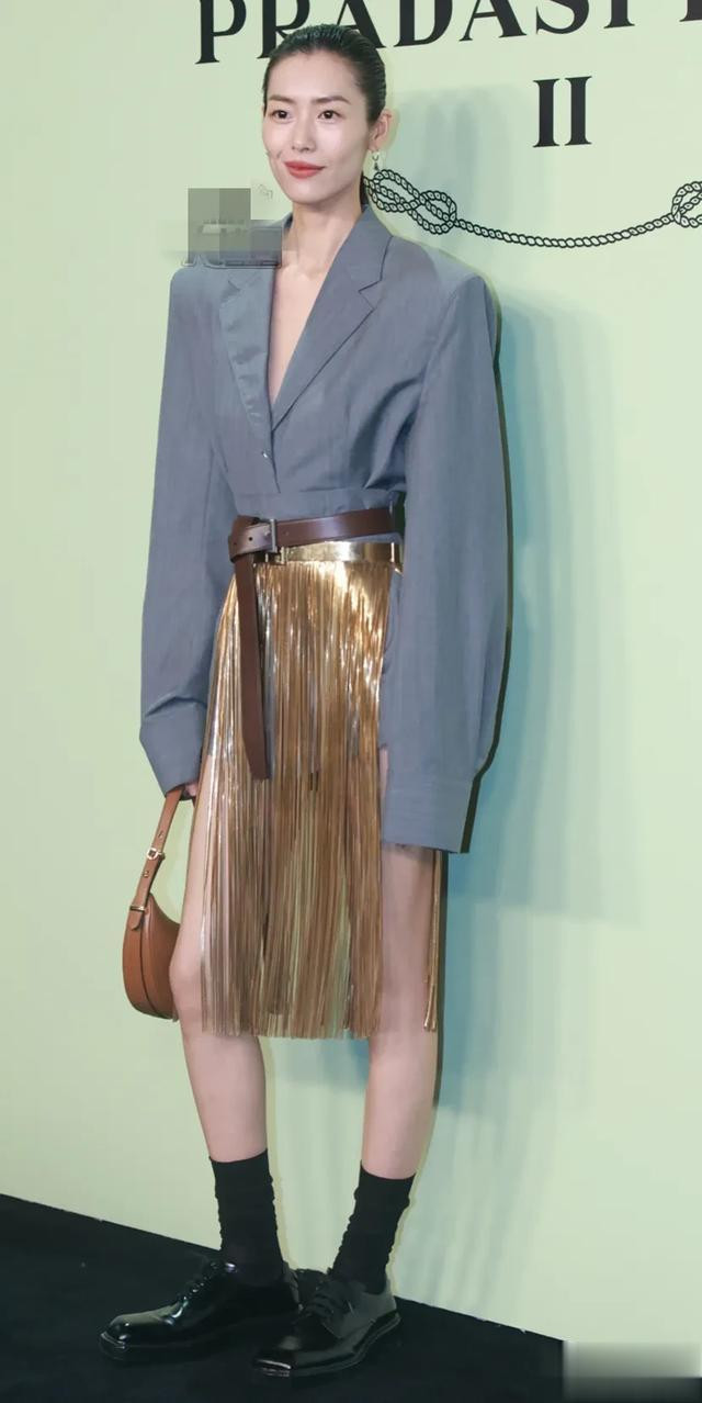 要说霸气还得是巩俐,慑服上就开了一条缝,其他地点全包了起来,这毛糙不露腿,露了少许就把场子给镇住了。